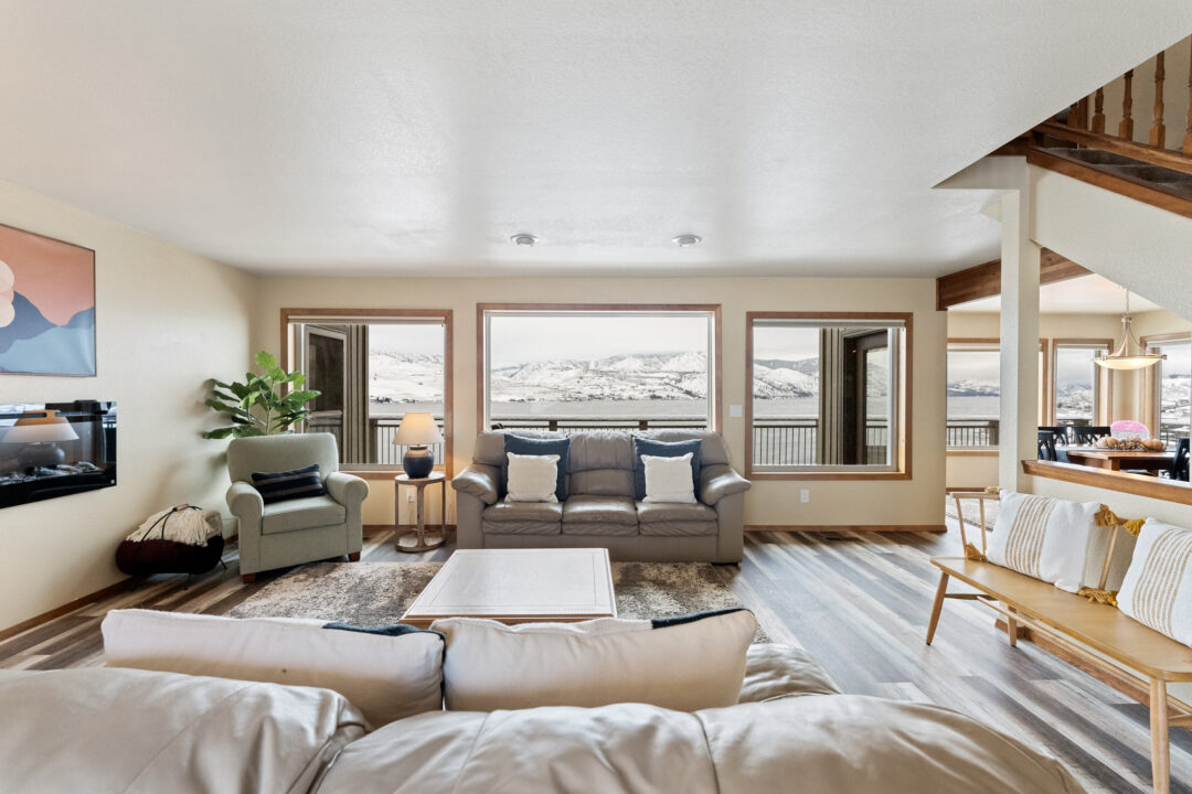Experience a private lakefront retreat like no other! Enjoy stunning panoramic views of Lake Chelan from your own backyard or unwind in the comfort of your private hot tub, surrounded by the breathtaking beauty of the mountains. This recently upgraded and beautifully furnished property features three floors of living space, five cozy bedrooms, and all the amenities you need for a perfect vacation.